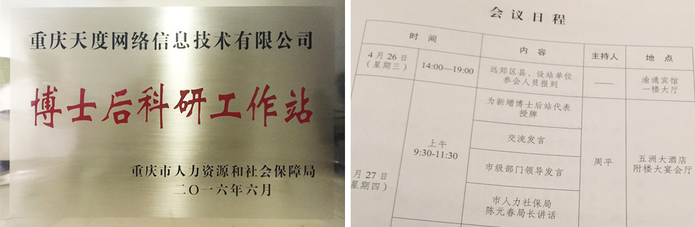 2017年4月27日,重庆市人力资源和社会保障局、重庆市博士后管理办公室举办的“全市博士后工作会”在五洲大酒店召开,重庆市人社局陈元春局长为“重庆尊龙凯时网络信息技术有限公司”等新增博士后站进行了授牌。
