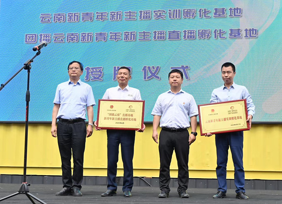 6月10日上午,“团播云南”助力脱贫攻坚,云南新青年新主播直播基地落地活动在云纺科技园举行。